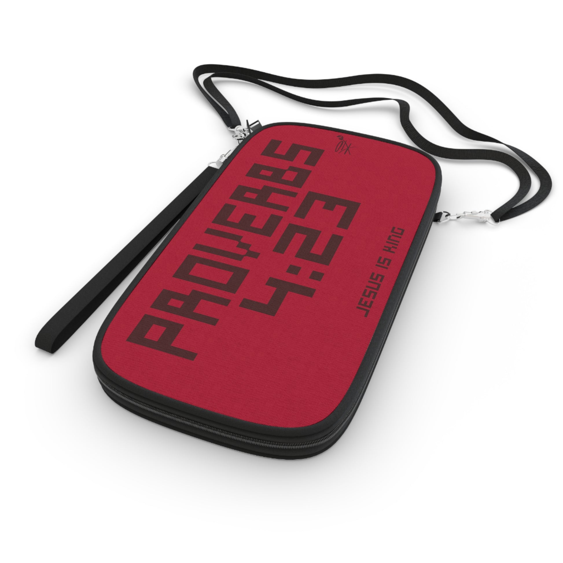 .: Black detachable and adjustable shoulder strap and a black wrist strap